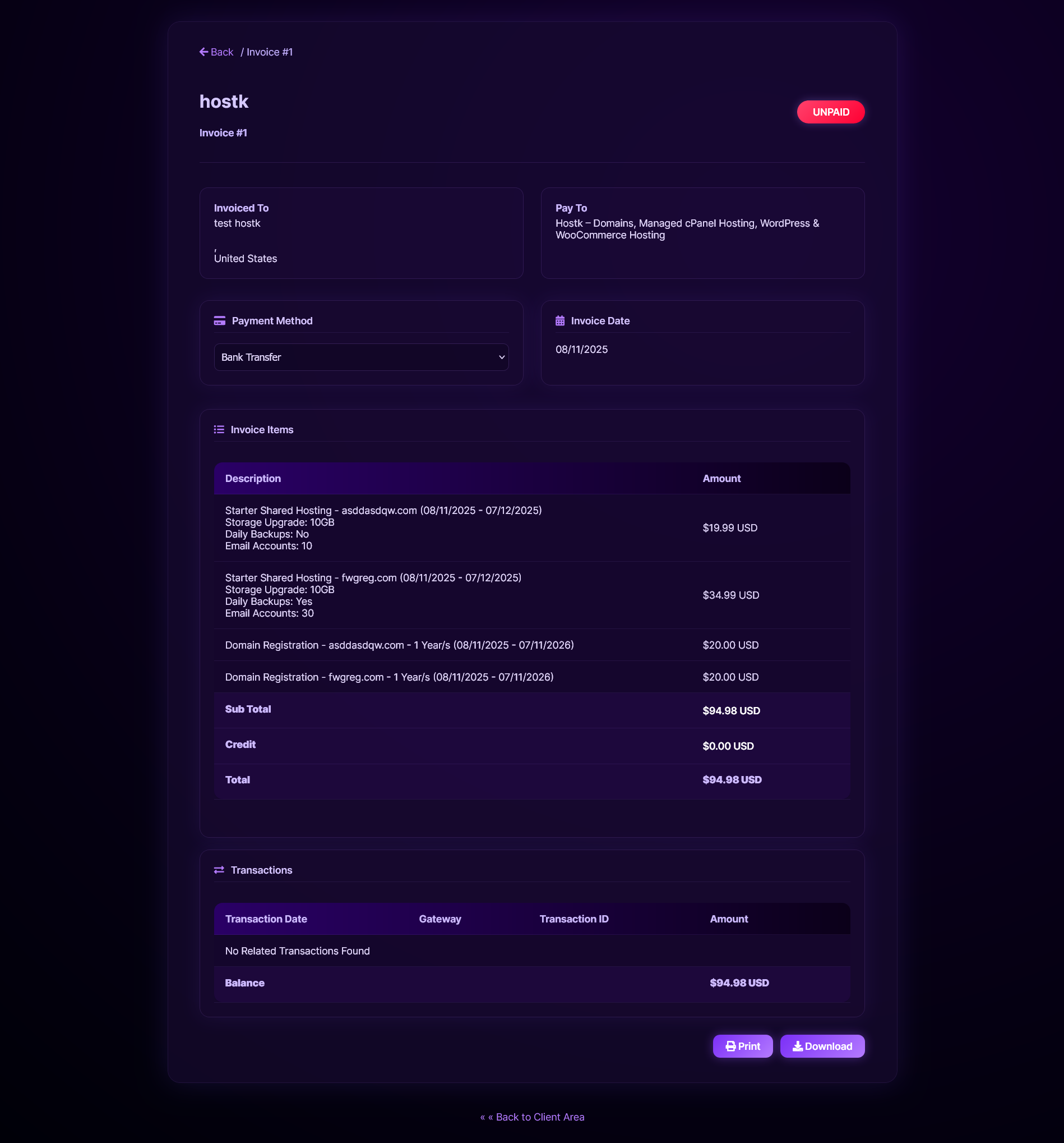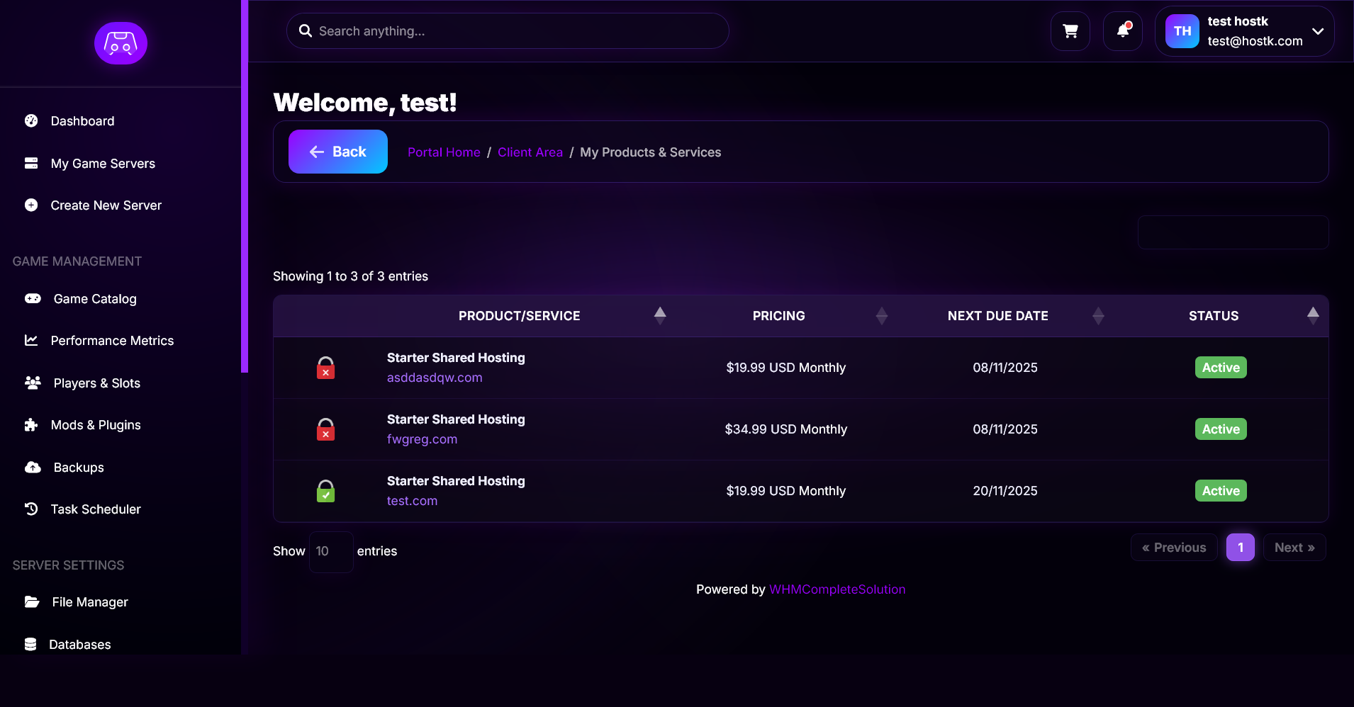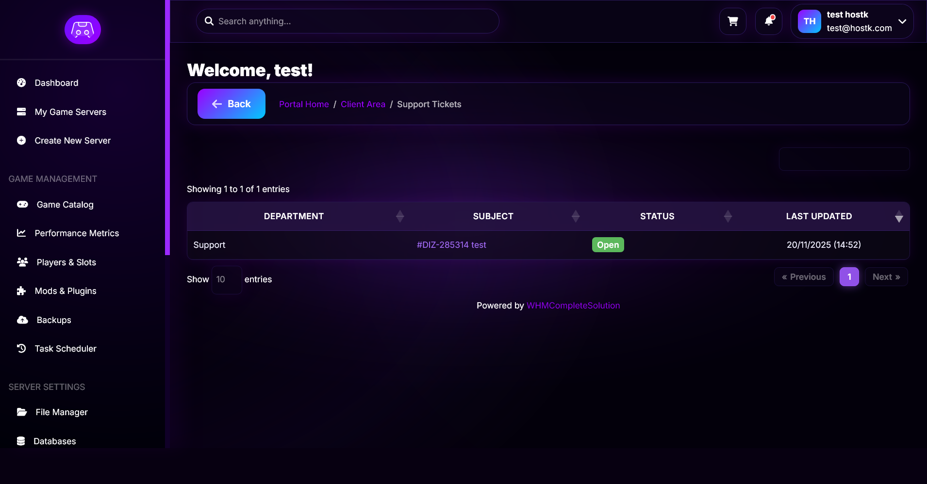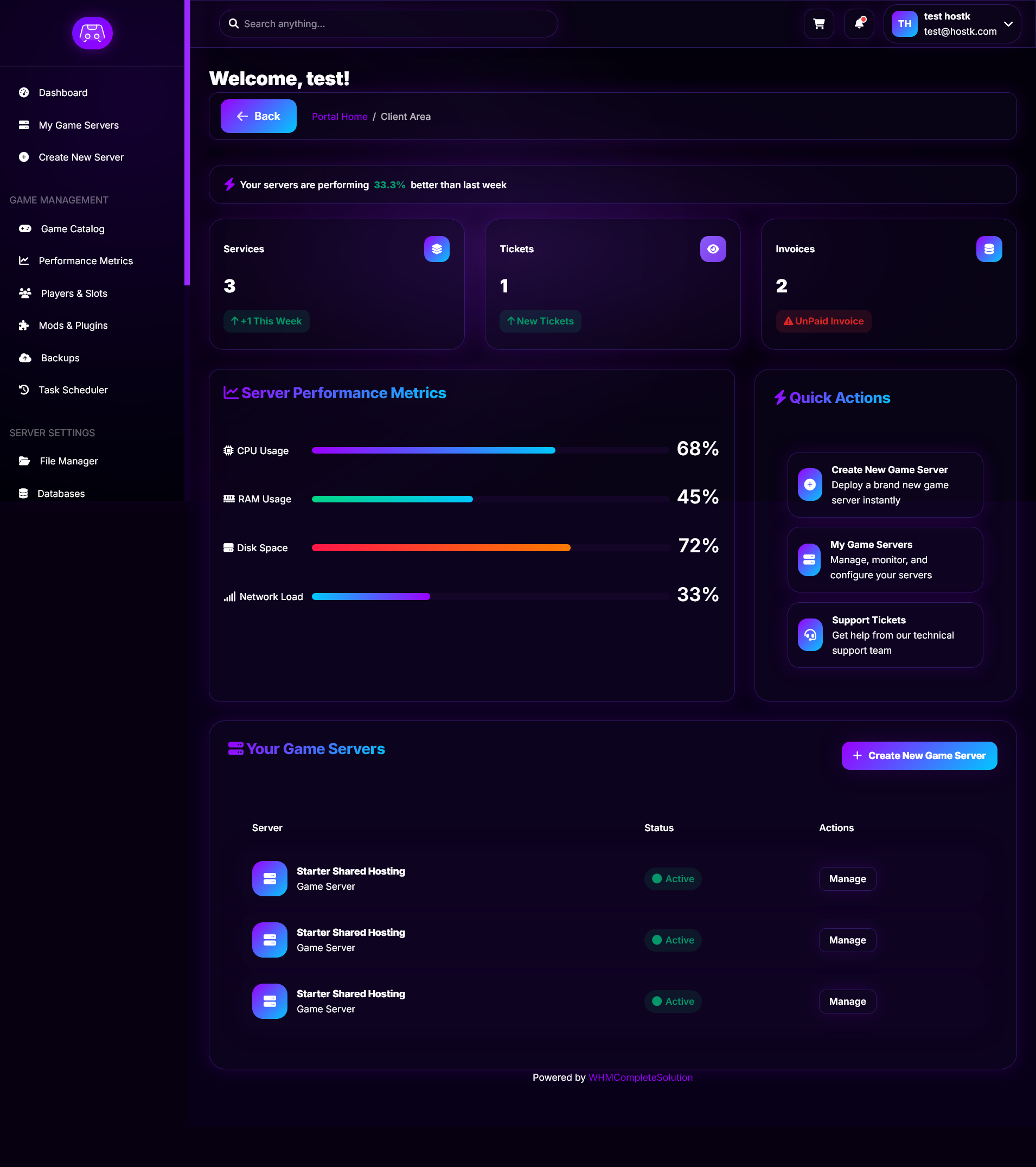 Great news! 🎉 After months of design and development, our brand-new Arena Game Server WHMCS Template is officially live! Arena is a premium dark-mode WHMCS theme built specifically for game server hosting providers. It delivers a modern gaming interface, a fully customized client area, and a powerful server-management dashboard designed for game hosting companies that want a fast, stylish, and professional look. Whether you sell Minecraft, FiveM, Rust, ARK, or any other game — Arena gives your clients the perfect experience. 🕹️🔥 ----------------------------------------------------- ✨ Key Features - Fully custom dark-mode WHMCS design - Game-style dashboard for server usage and status - Server list with Start / Stop / Restart quick-action buttons - Pricing tables with slot selector and location selector - Games showcase section - Testimonials section - Gaming-themed Login and Register pages - Contact page with integrated form - Responsive, lightweight, and RTL-ready - SEO-optimized and fast loading ----------------------------------------------------- 🧭 Frontend Pages - Landing Page - Games Showcase - Pricing Plans - Testimonials - Contact Page - Login / Register ----------------------------------------------------- 💼 Client Area - Custom Dashboard (status, performance, quick actions) - Server List and Server Management - My Services / Products - Invoices and Billing - Support Tickets - User / Profile pages ----------------------------------------------------- ⚙️ Compatibility - WHMCS: 8.0 – 8.13+ - PHP: 8.1 – 8.3 - Works perfectly with: cPanel, Plesk, DirectAdmin, LiteSpeed, Nginx, Apache ----------------------------------------------------- 🖼️ Screenshots Preview Open Gallery — https://hostk.com/arena-template ----------------------------------------------------- 🧪 Live Demo Frontend Demo: https://demo.hostk.com/arena/ WHMCS Demo: https://demo.hostk.com/index.php?systpl=arena Login: test@hostk.com Password: test ----------------------------------------------------- 🛒 Purchase Now https://my.hostk.com/cart.php?a=add&pid=67 ----------------------------------------------------- About Arena Arena is the complete game hosting WHMCS solution — modern dark-mode template, gaming dashboard, server-action UI, and a fully customized client area. It is responsive, RTL-ready, SEO-optimized, and installs in minutes. Perfect for hosting Minecraft, FiveM, Rust, ARK, TheIsle, Palworld, and all game servers.