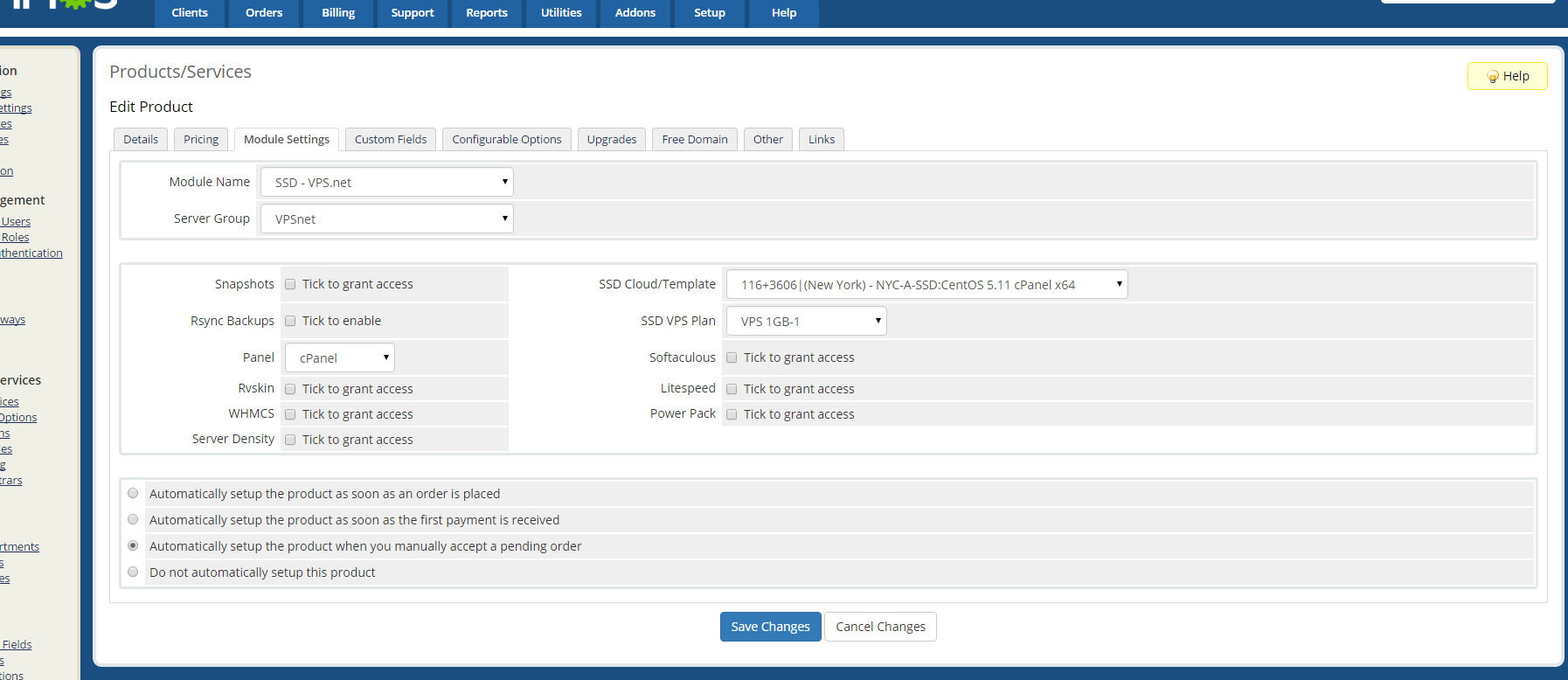 VPS.net SSD VPS Servers module for WHMCS